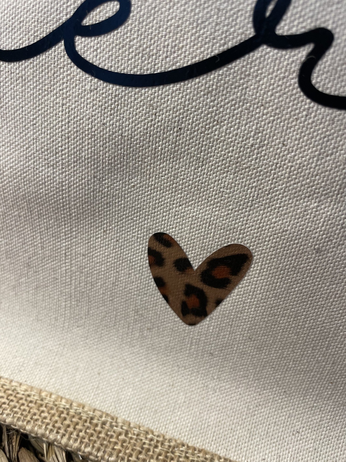 Cabas spacieux en toile de jute naturelle, alliant praticité et style. Ce cabas arbore un flocage bicolore : un cœur élégant et des motifs léopard tendance qui ajoutent du caractère. Parfait pour les sorties quotidiennes, il combine solidité et esthétique moderne. Les anses robustes garantissent un confort de portage optimal, tandis que sa capacité généreuse en fait un compagnon idéal pour transporter vos essentiels avec assurance.